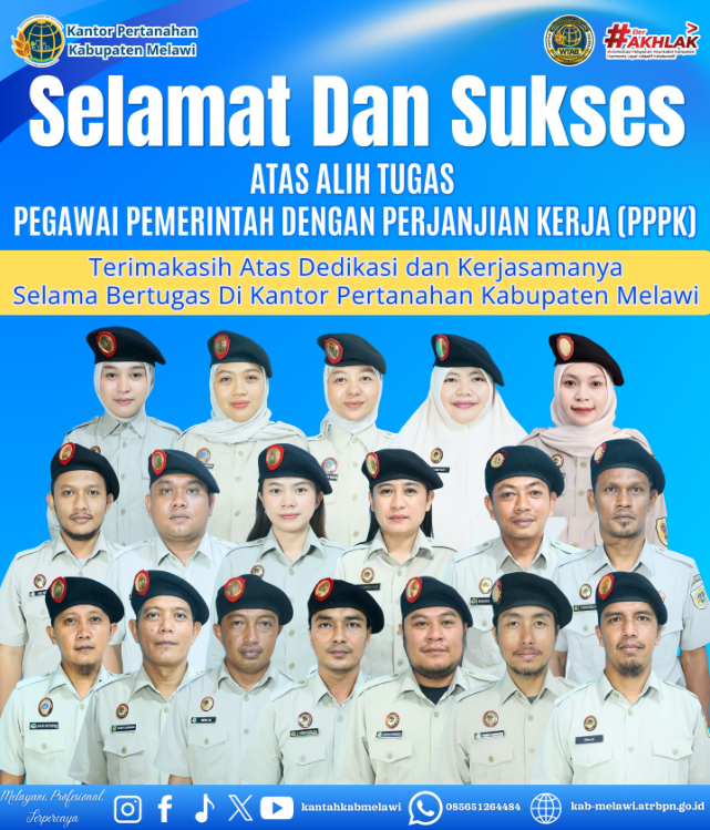Wartamelawi.com – Segenap Keluarga Besar Kantor Pertanahan Kabupaten Melawi menyampaikan ucapan selamat dan sukses kepada 18 Pegawai Pemerintah dengan Perjanjian Kerja (PPPK) yang mendapatkan penugasan di tempat kerja yang baru.