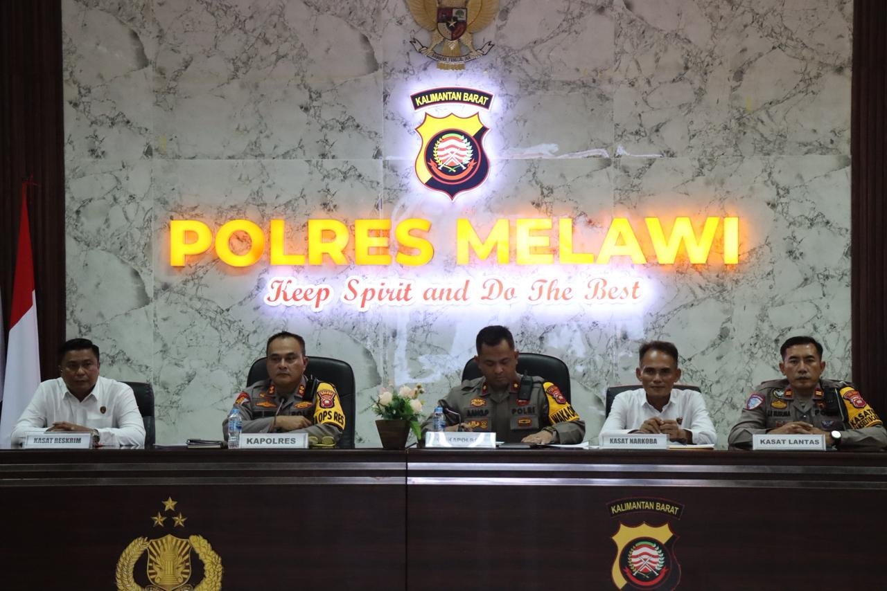 Kegiatan yang membahas kinerja kepolisian serta situasi kamtibmas dan lalu lintas di wilayah hukum Polres Melawi ini dipimpin langsung oleh Kapolres Melawi AKBP Harris Batara Simbolon, S.I.K., S.H., M.Tr.Opsla, didampingi Wakapolres Melawi Kompol Aang Permana, S.I.P., S.H., M.A.P. Turut hadir Kasat Reskrim AKP Ambril, S.A.P., M.A.P., Kasat Narkoba AKP Dhanie Sukmo Widodo, dan Kasat Lantas IPTU J. E. Kusuma, S.A.P., M.H., serta insan pers dari media cetak, elektronik, dan online. Acara berlangsung di Aula Tri Brata Polres Melawi, Rabu (31/12/2025) lalu.