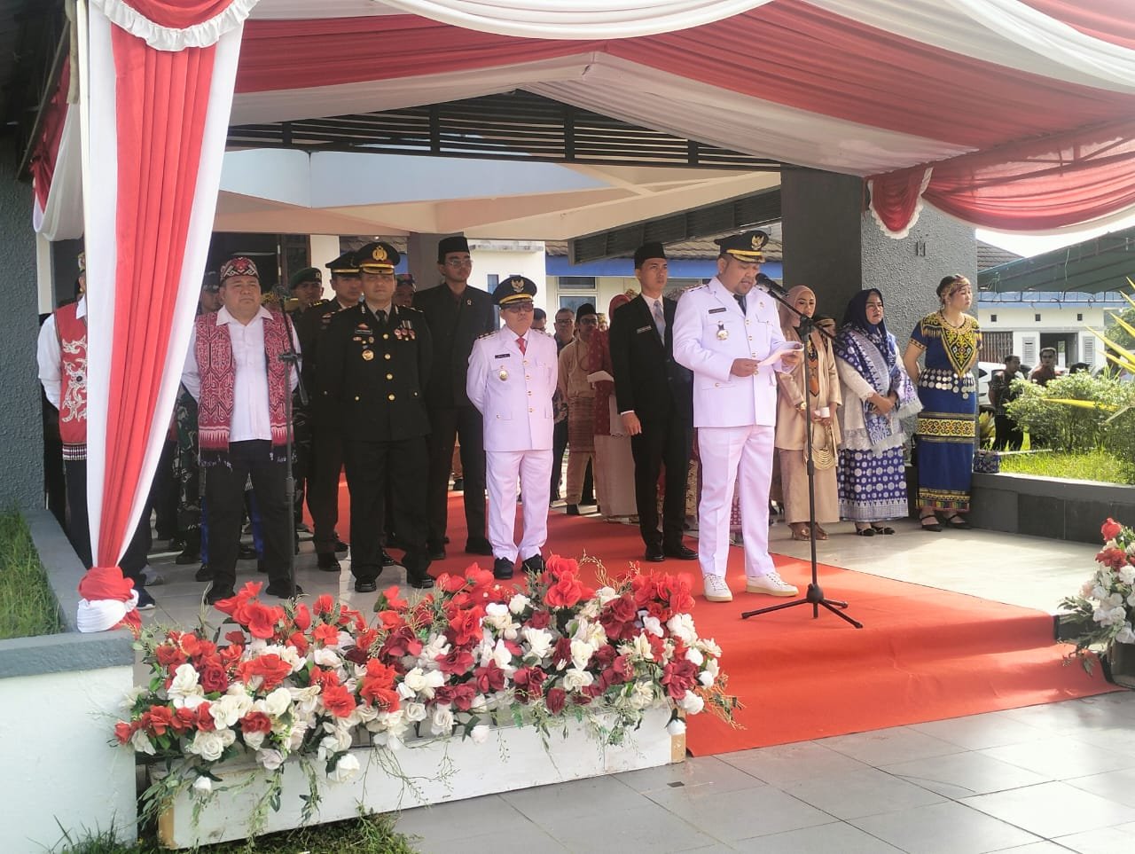 Upacara tersebut dipimpin langsung oleh Bupati Melawi H. Dadi Sunarya Usfa Yursa, S.Pd. selaku Inspektur Upacara. Turut hadir dalam kegiatan tersebut Wakil Bupati Melawi Malin, S.H., Anggota DPRD Provinsi Kalbar Ritaudin, S.E., Ketua DPRD Melawi Hendegi Januardi Usfa Yursa, S.IP., Wakil Ketua DPRD Melawi Matius Rindau, S.Hut., serta Anggota DPRD Melawi lainnya.