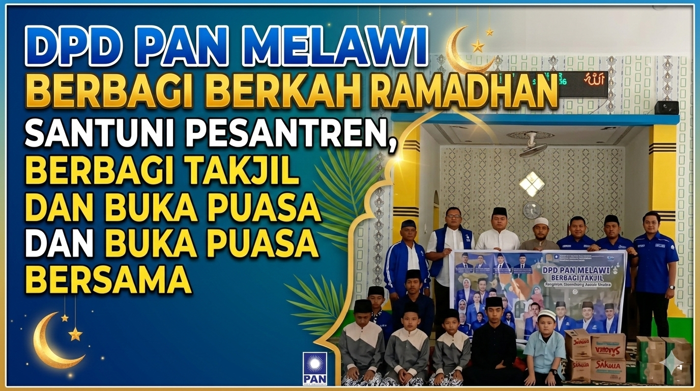 Wartamelawi.com – Dewan Pimpinan Daerah (DPD) Partai Amanat Nasional (PAN) Kabupaten Melawi menggelar kegiatan sosial keagamaan berupa penyerahan bantuan sembako kepada pesantren, pembagian takjil kepada masyarakat, serta buka puasa bersama dalam rangka menyemarakkan Bulan Suci Ramadhan 1447 Hijriah.