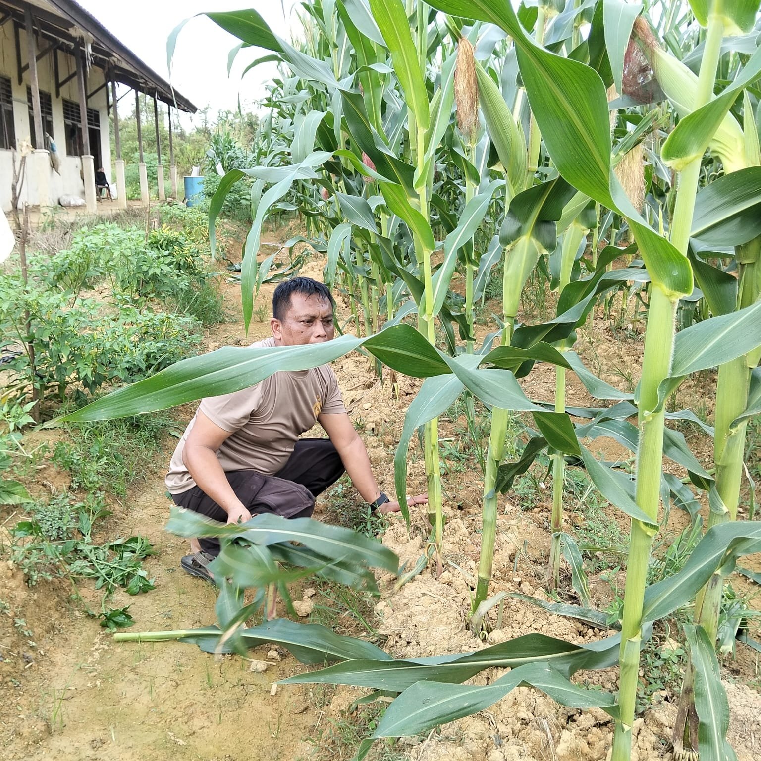 Kapolres Melawi Polda Kalbar AKBP Harris Batara Simbolon, S.I.K., S.H., M.Tr.Opsla melalui Kapolsek Nanga Pinoh Iptu Jamidi menyampaikan bahwa saat ini usia tanaman jagung telah memasuki 60 Hari Setelah Tanam (HST) dan menunjukkan pertumbuhan yang baik.