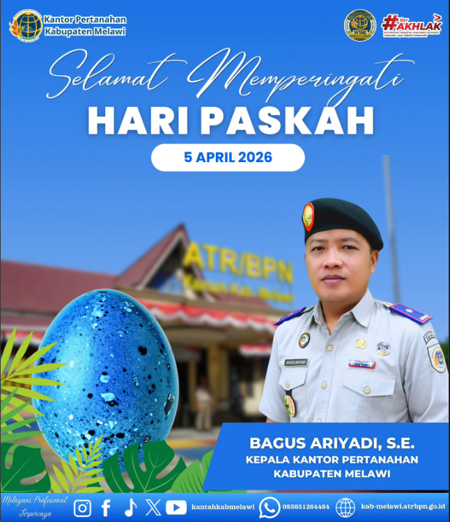 Dengan semangat Paskah, Kantor Pertanahan Kabupaten Melawi berkomitmen untuk terus memberikan pelayanan terbaik kepada masyarakat serta mendukung terciptanya lingkungan yang penuh kedamaian dan kebersamaan. (Bgs).