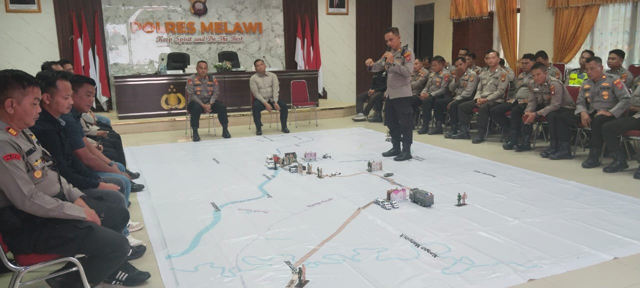 Wartamelawi.com – Dalam rangka mematangkan kesiapan pelaksanaan Operasi Lilin Kapuas 2025, Polres Melawi Polda Kalimantan Barat menggelar Tactical Floor Game (TFG) pada Kamis (18/12/2025) bertempat di Aula Tribrata Polres Melawi.