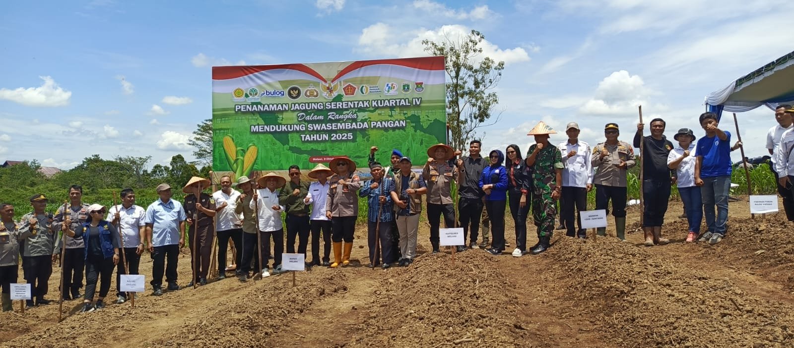 Kapolres Melawi, AKBP Harris Batara Simbolon, turut berpartisipasi dalam kegiatan penanaman jagung serentak di lahan seluas satu hektare yang berlokasi di belakang Kantor Dinas Sosial Kabupaten Melawi, Rabu (8/10/2025).
