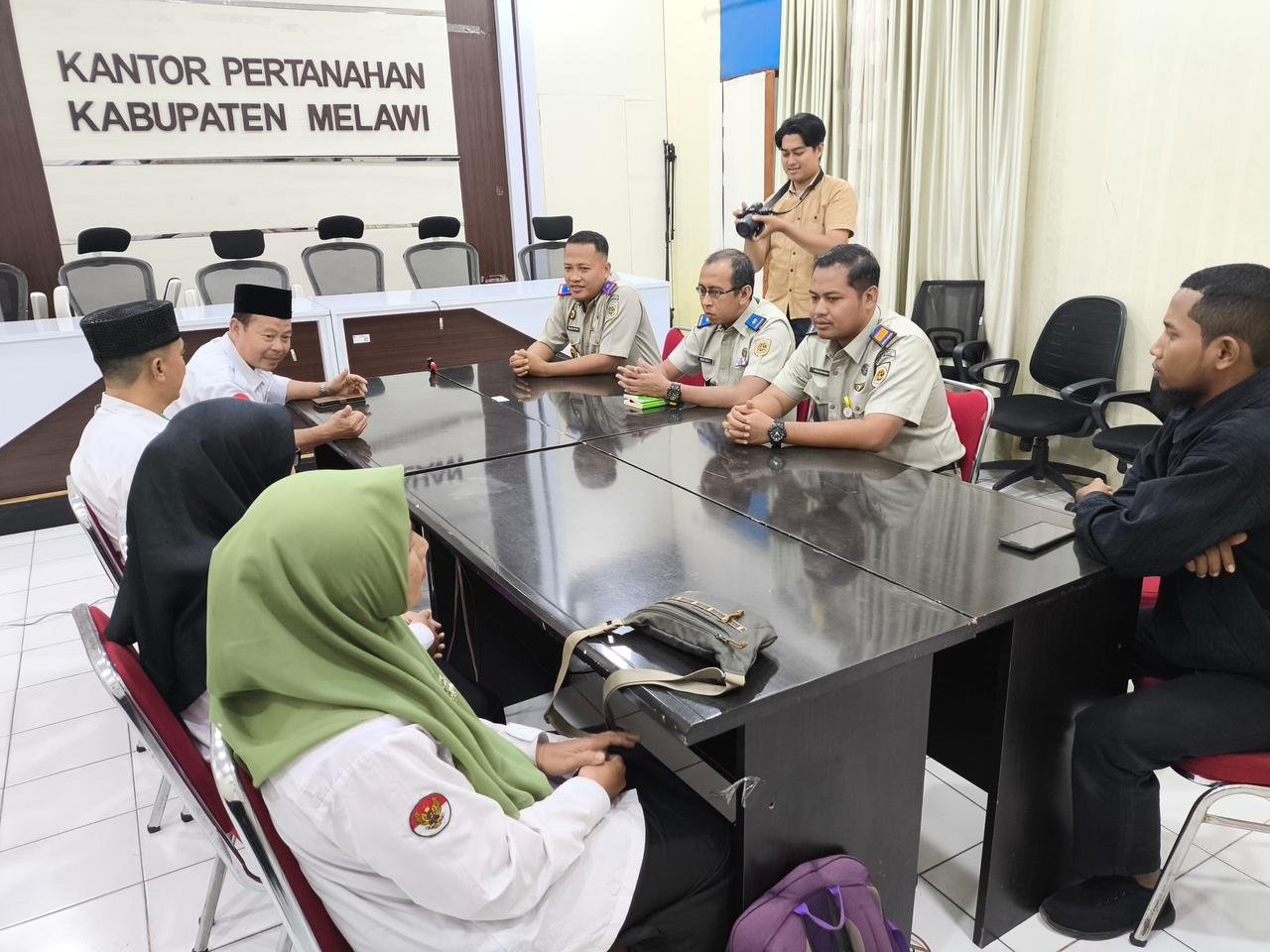 Wartamelawi.com – Kepala Kantor Kementerian Agama Kabupaten Melawi, H. Anuar Akhmad, S.Ag., M.M., melakukan silaturahmi sekaligus koordinasi ke Kantor Pertanahan Kabupaten Melawi, Selasa (7/10/2025). Kunjungan ini dalam rangka menjajaki kerja sama percepatan sertifikasi Barang Milik Negara (BMN) Kementerian Agama, serta aset-aset yayasan madrasah berupa tanah di wilayah Melawi. Pertemuan berlangsung sejak pukul 09.30 WIB hingga selesai.