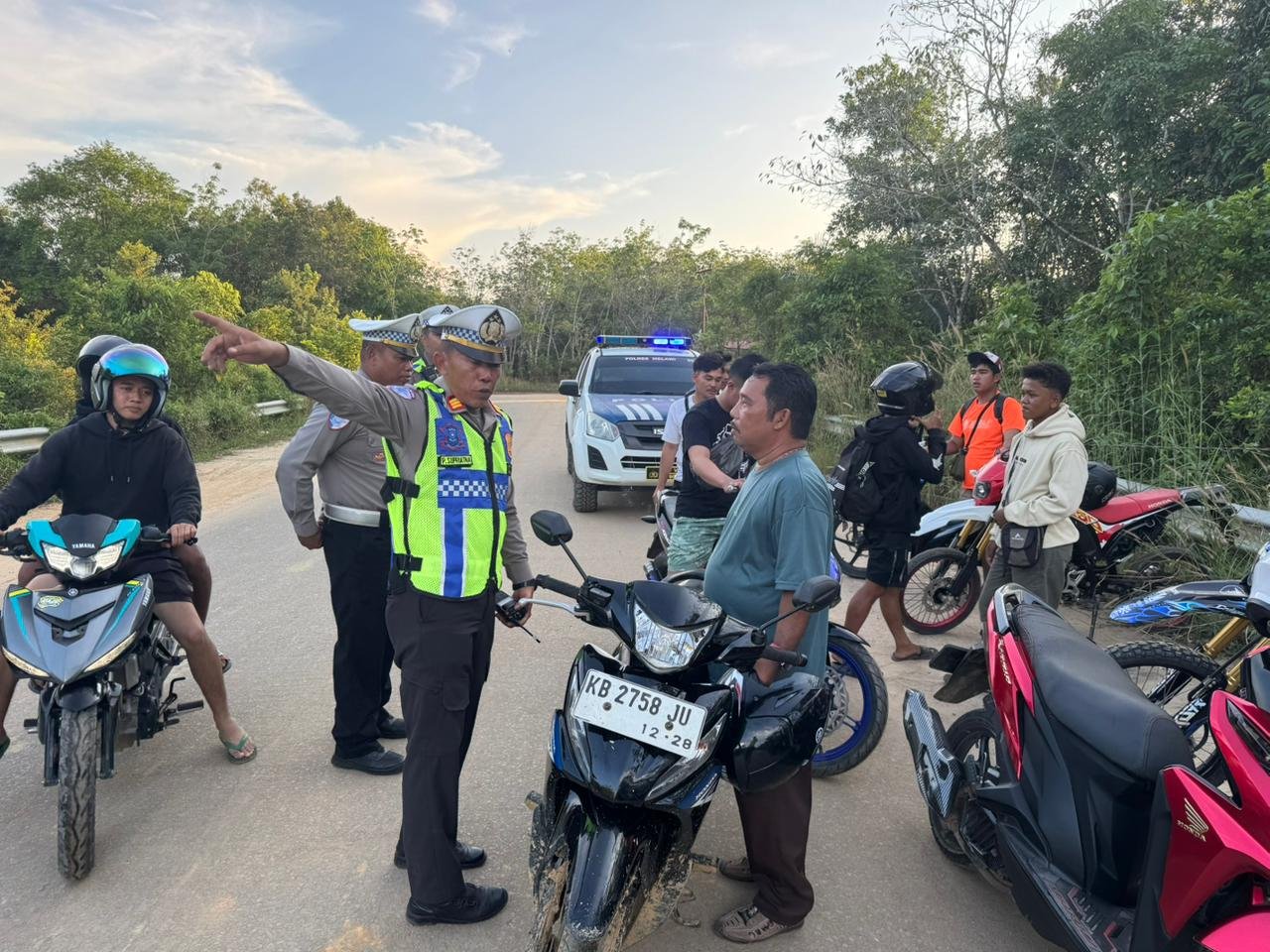 Wartamelawi.com – Satlantas Polres Melawi mengamankan sedikitnya 50 unit kendaraan bermotor yang menggunakan knalpot tidak sesuai spesifikasi (brong) dalam penindakan terhadap aksi balap liar di kawasan Jembatan Melawi II, Desa Sungai Raya, Kecamatan Pinoh Utara, Jumat (24/4/2026). Penertiban ini merupakan respons cepat atas laporan masyarakat yang resah dengan kebisingan dan aktivitas berbahaya di lokasi tersebut.