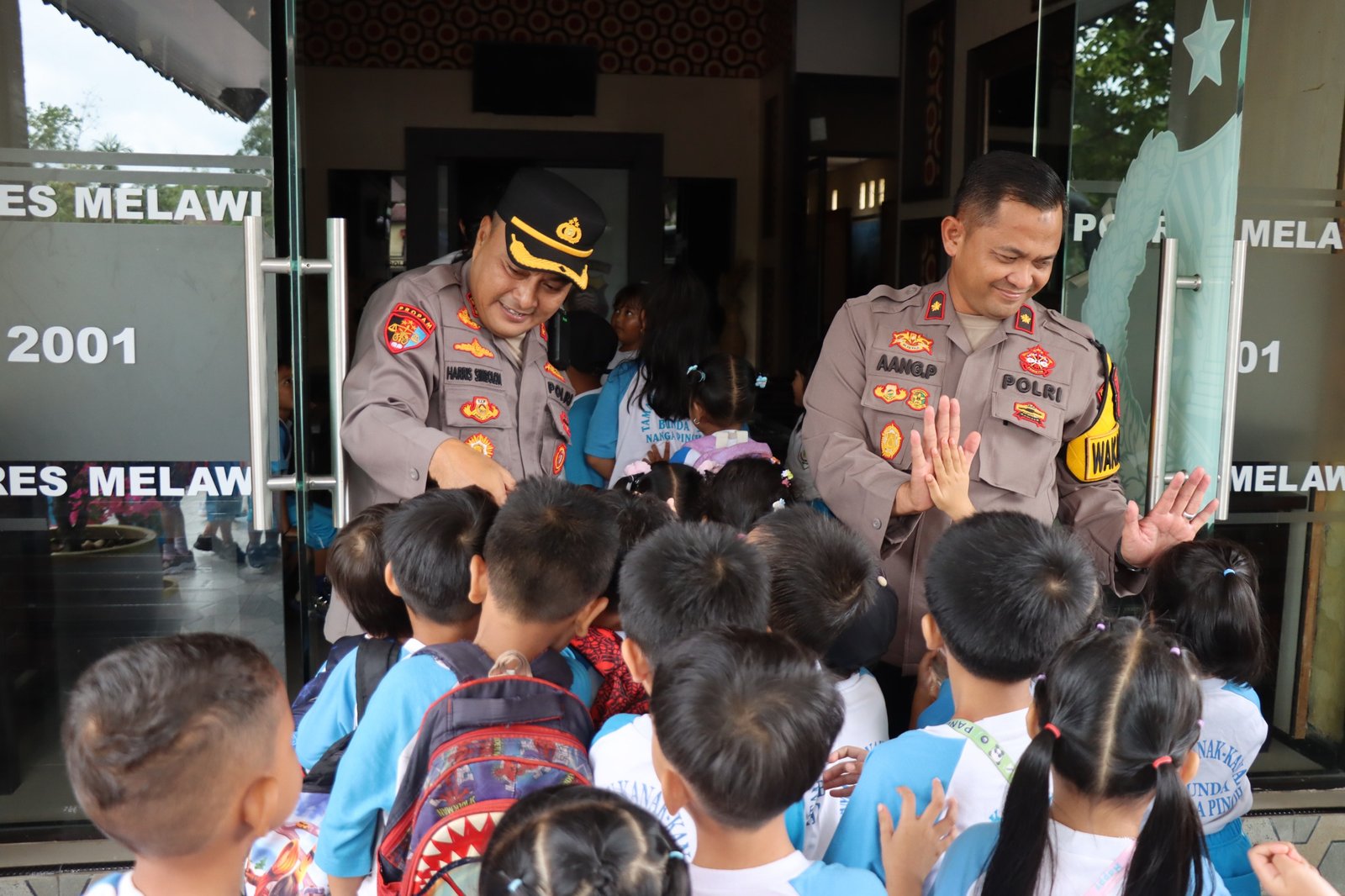 Poto : Kapolres Melawi, AKBP Harris Batara Simbolon didampingi Wakapolres Aang Permana, sambut langsung kehadiran Anak-anak TK Bunda di Mapolres Melawi