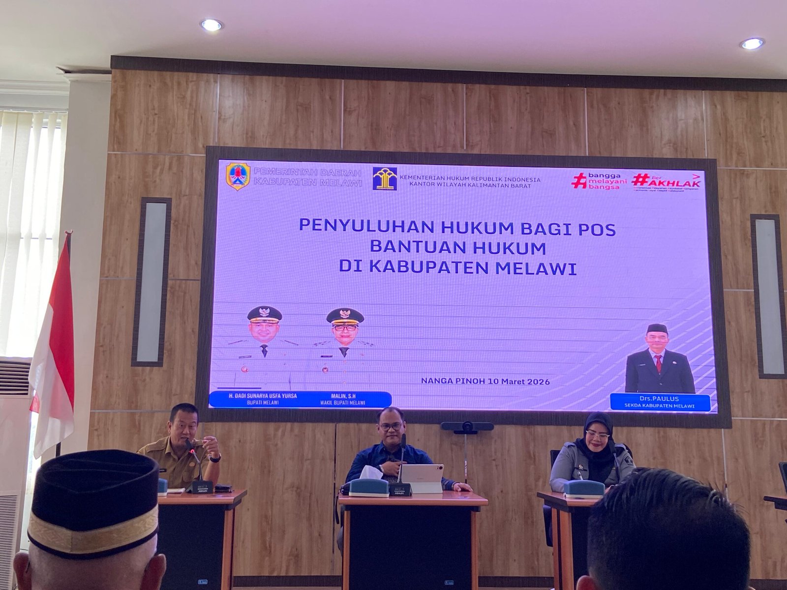 Kegiatan tersebut dilaksanakan pada Selasa, 10 Maret 2026, bertempat di Convention Hall Kantor Bupati Melawi. Penyuluhan ini diikuti oleh para kepala desa, camat, serta paralegal dari berbagai wilayah di Kabupaten Melawi.