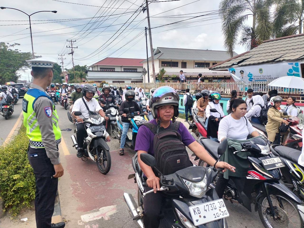 Wartamelawi.com – Untuk memastikan keamanan dan kelancaran arus lalu lintas, Kepolisian Resor Melawi terus meningkatkan pelayanan kepada masyarakat pengguna jalan. Melalui Satuan Lalu Lintas, Polres Melawi secara rutin melaksanakan ploting point siang dengan menempatkan personel di sejumlah titik rawan, khususnya di kawasan sekolah saat jam pulang, Selasa (20/1/26).