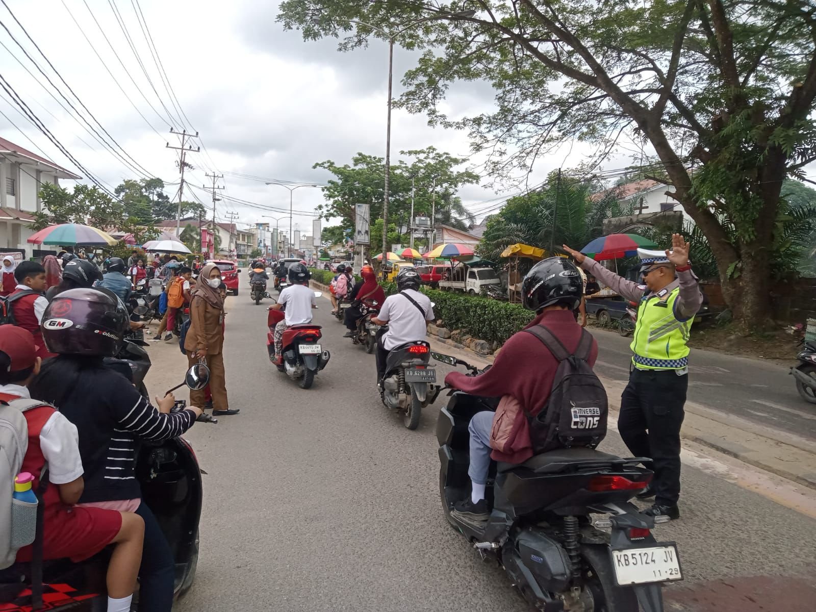 Kasat Lantas menghimbau kepada masyarakat pengguna jalan yang akan melakukan penjemputan putra putrinya agar selalu mematuhi arahan petugas dengan tidak memarkirkan kendaraan baik roda dua dan roda empat di bahu jalan yang dapat menyebabkan kemacetan dan perlambatan arus lalu lintas.
