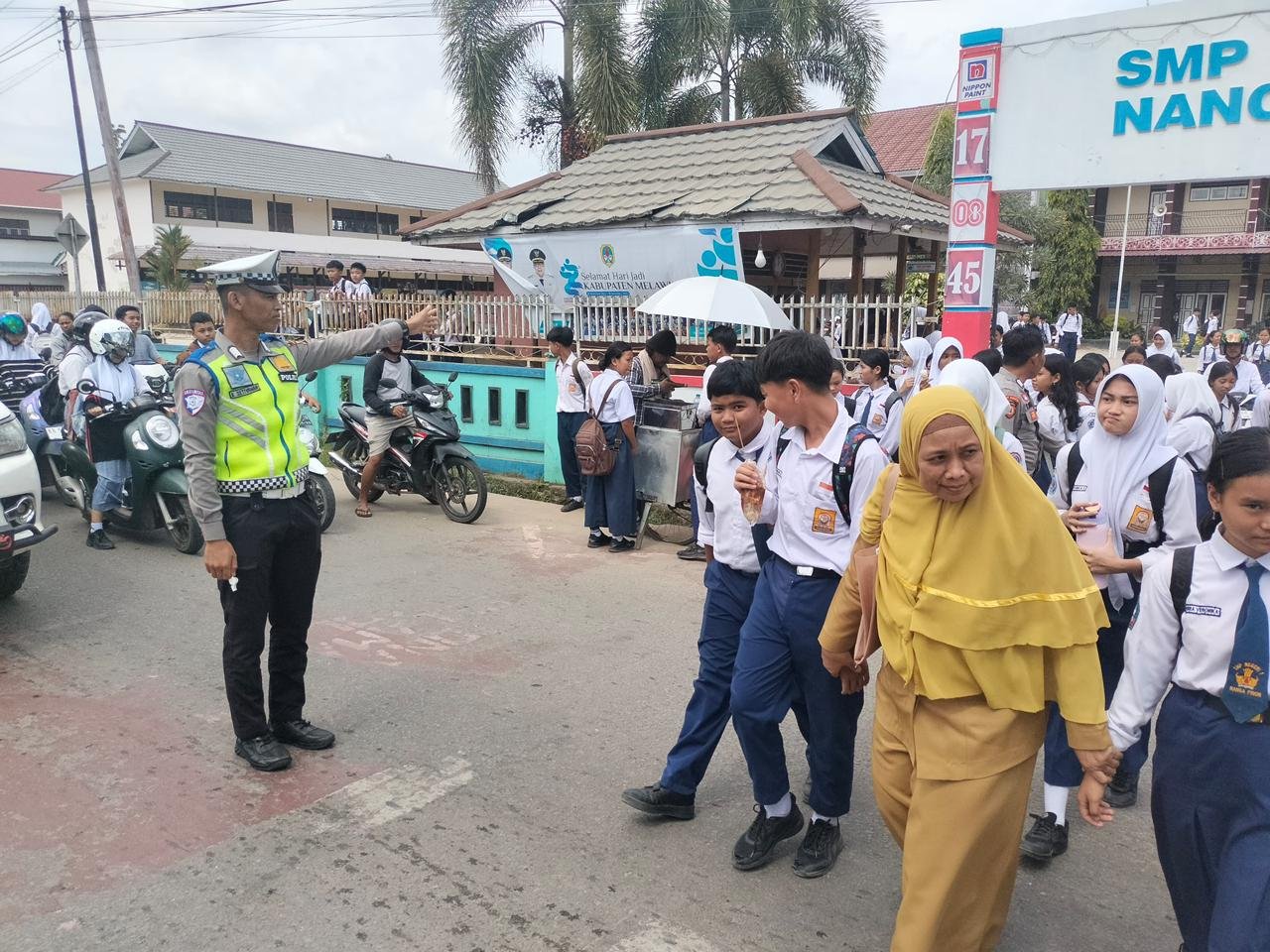 “Pada jam pulang sekolah, kami hadir memastikan kamseltibcar lancar menjadi prioritas utama,” terang AKP Pipit