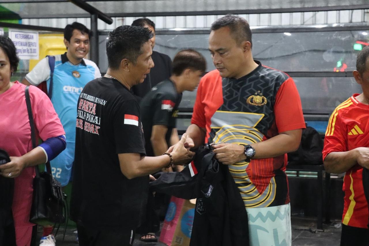 Wartamelawi.com – Polres Melawi menyerahkan sarana kontak berupa baju kepada para jurnalis dan menggelar pertandingan persahabatan mini soccer, Kamis (6/11/2025) malam, di lapangan Unipol Nanga Pinoh, sebagai upaya mempererat kemitraan dan sinergi antara kepolisian dan insan pers. Kegiatan ini sekaligus menjadi momen keakraban, di mana tim Polres yang diperkuat Kapolres, Wakapolres, Kasat Reskrim, Kasat Lantas, PJU, dan anggota berhasil menaklukkan tim wartawan dengan skor 5–1.