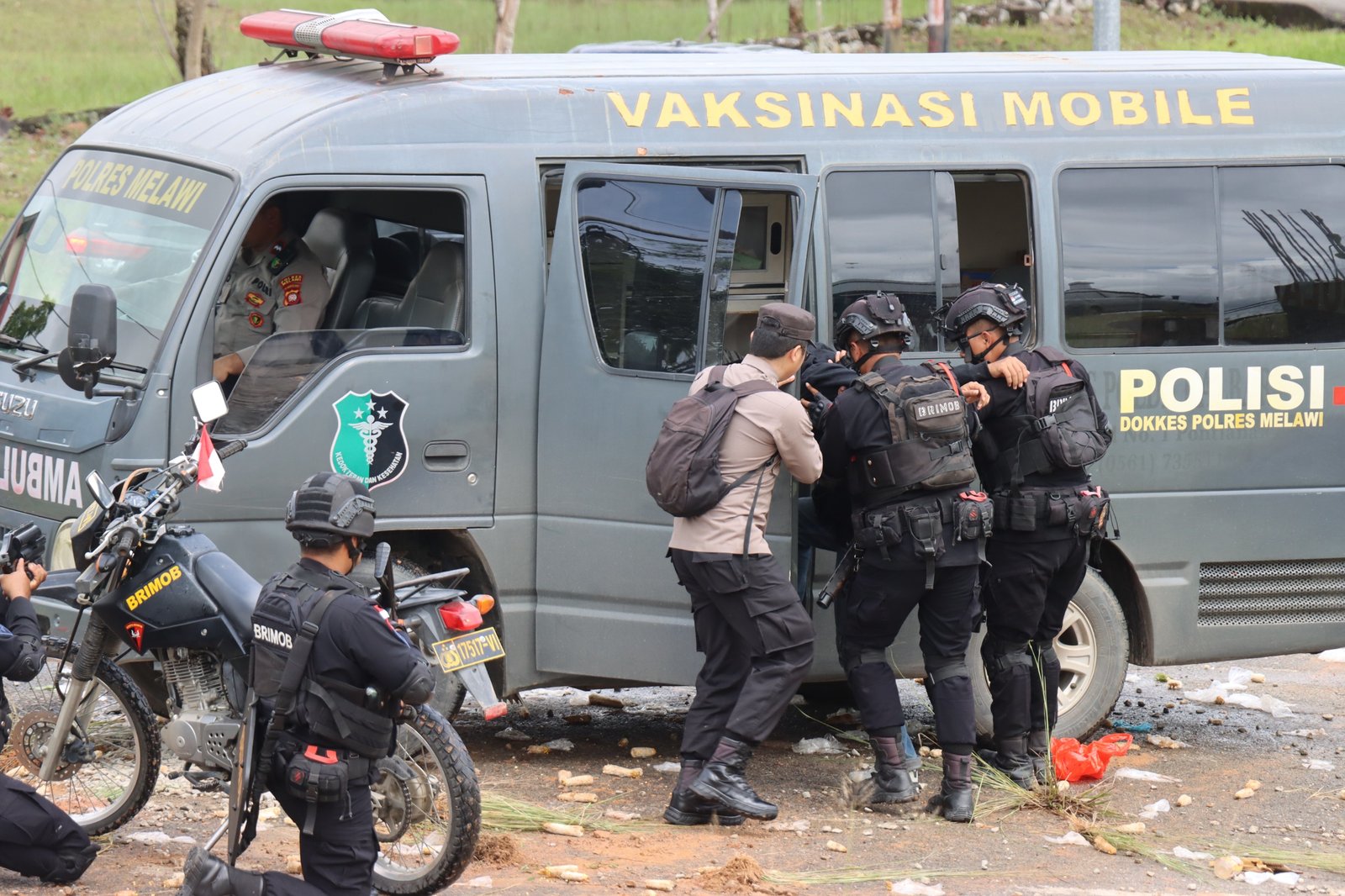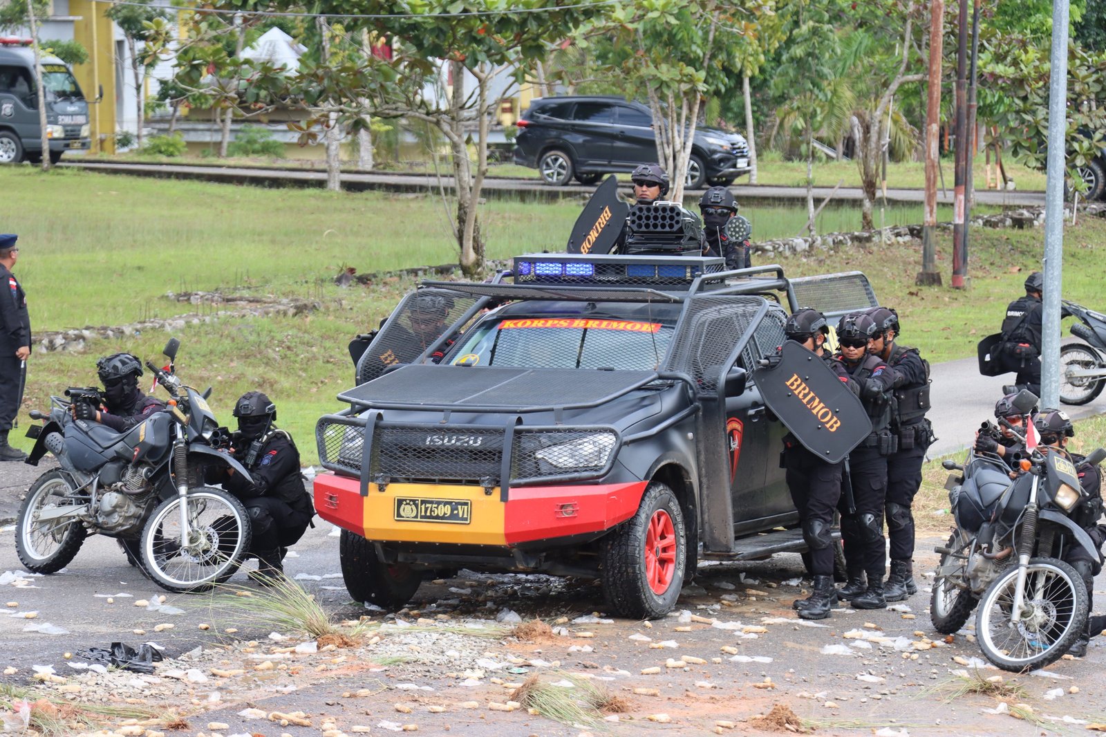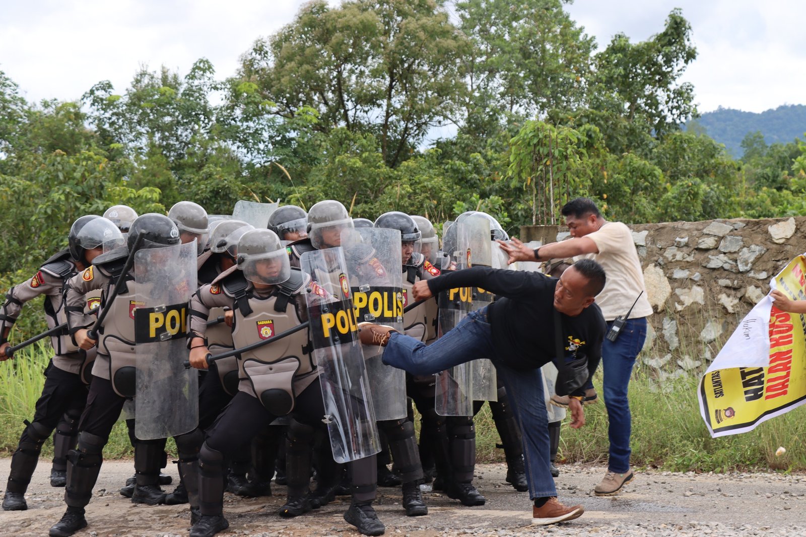 Seluruh personel Polres Melawi dan Batalyon C Sat Brimobda Kalbar melaksanakan simulasi dengan baik dan profesional sesuai tahapan penanganan aksi unjuk rasa.
