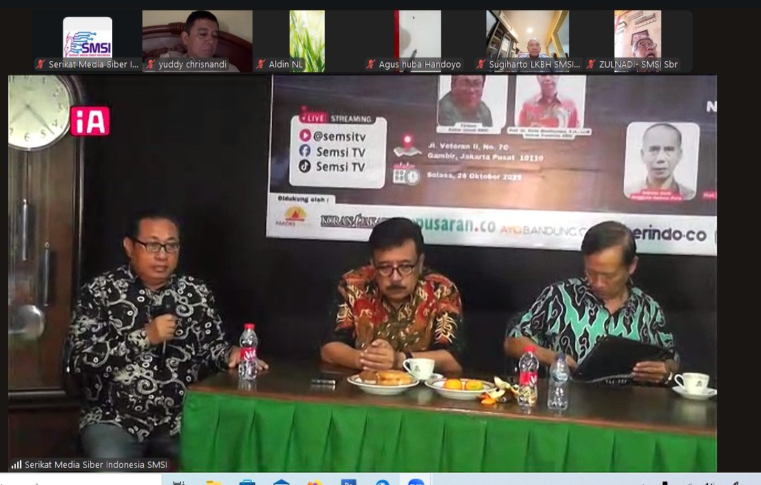 Acara yang berlangsung secara hybrid ini dibuka oleh Ketua Umum SMSI, Firdaus, yang menekankan pentingnya pemahaman hukum di era media digital. “Teman-teman media baru jangan sampai terperosok dalam pasal UU ITE. Mari kita pahami bersama agar bisa terus berkarya secara bertanggung jawab,” ujarnya. Menurutnya, literasi hukum dan etika digital menjadi kunci agar kebebasan berekspresi tetap berjalan berdampingan dengan tanggung jawab sosial.