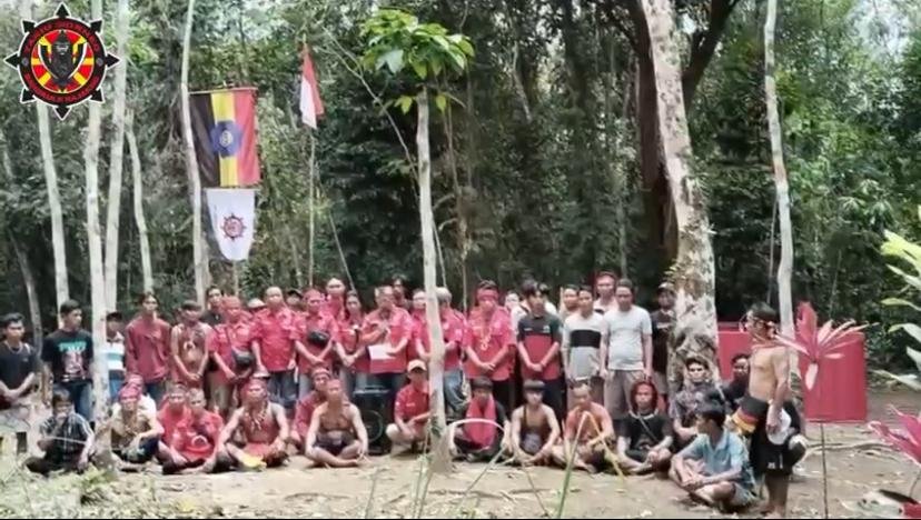 Poto : Pernyataan sikap ini dipimpin langsung oleh Mangku TBBR Kabupaten Melawi atau Ketua DPD TBBR Melawi, Andrianus Metro Thino, S.IP., M.A.P., dan dilaksanakan di Kramat Sinderolok, Desa Tengkajau, Kecamatan Pinoh Utara.