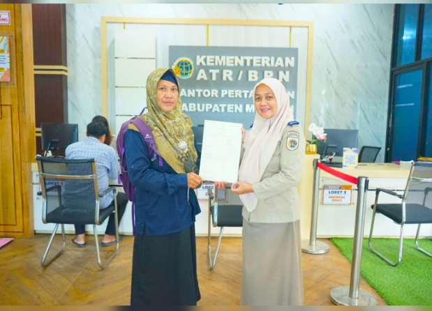 Wartamelawi.com – Kantor Pertanahan Kabupaten Melawi menyerahkan sertipikat elektronik tanah wakaf kepada Nahdlatul Ulama (NU) Desa Tanjung Paoh, Kecamatan Pinoh Utara, Kabupaten Melawi, Provinsi Kalimantan Barat. Penyerahan sertipikat elektronik tersebut dilaksanakan di Kantor Pertanahan Kabupaten Melawi sebagai bagian dari upaya pemerintah dalam memberikan kepastian hukum atas tanah wakaf.