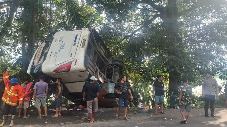 Sebagai langkah antisipasi, sopir mengemudikan bus dengan kecepatan rendah. Namun, saat melintasi lokasi kejadian yang merupakan turunan tajam dengan tikungan ke kanan, kendaraan diduga kehilangan kendali. Bus sempat bergerak ke kiri sebelum akhirnya sopir mencoba mengoreksi arah dengan membanting setir ke kanan, namun kecelakaan tidak dapat dihindari. Dugaan sementara, gangguan pada rem menjadi faktor utama penyebab insiden tersebut.